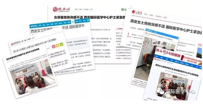 徐妍、馬苗苗緊急救助患者后,宣傳策劃部立即進行了深入采訪,及時撰寫了消息《西安女士在地鐵上突感不適,國際醫(yī)學中心護士緊急救助》,并率先在國際醫(yī)學中心公眾號上發(fā)布,獲數(shù)萬位網(wǎng)友點贊熱評。