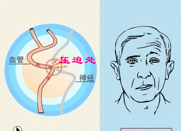 最常見的病因是微血管壓迫面神經(jīng)根部所致,由于解剖變異存在,且隨著年齡增長(zhǎng),顱內(nèi)血管迂曲硬化,壓迫面神經(jīng)根部的髓鞘薄弱處,造成神經(jīng)沖動(dòng)傳導(dǎo)“短路”而誘發(fā)面肌痙攣。