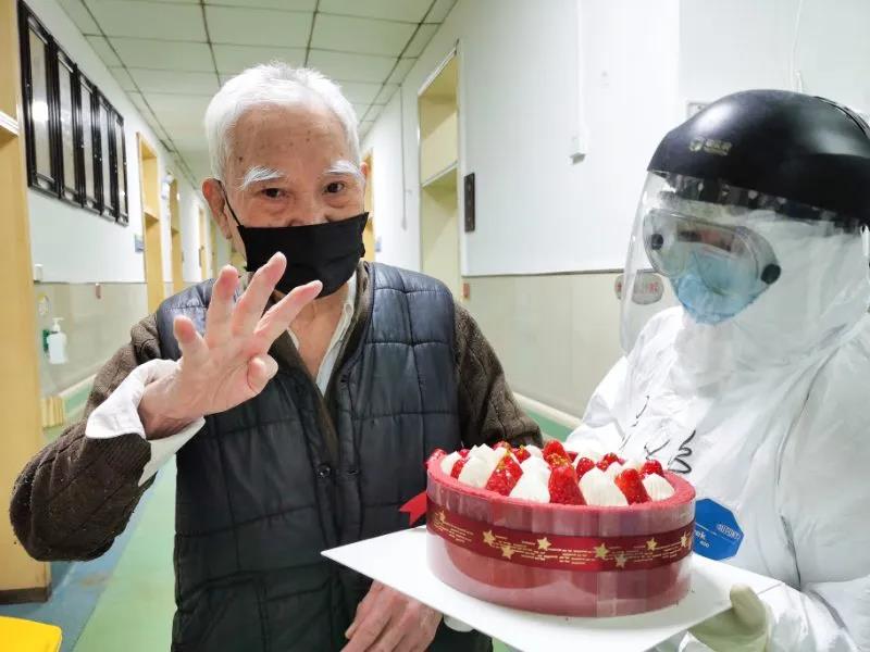 “我年齡大了,活動(dòng)不方便,如今住進(jìn)了醫(yī)院,西安國際醫(yī)學(xué)中心醫(yī)院赴湖北醫(yī)療隊(duì)隊(duì)員像家人一般照顧我,我心里暖暖的!”正在切蛋糕的87歲汪大爺說。