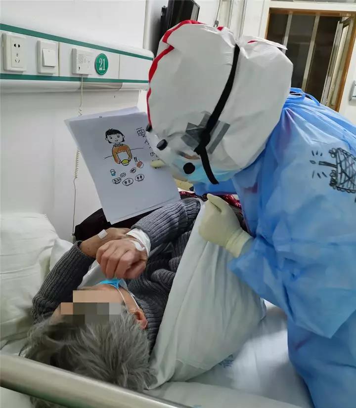 2月23日晚21:22,病區(qū)收治了一位從養(yǎng)老院送來的八十多歲的老奶奶,社區(qū)負(fù)責(zé)人把奶奶送到醫(yī)院后匆匆離院。疫情緊急,來時(shí)匆忙,奶奶入院后沒有帶一件生活用品??诳氏牒人荒苡貌》坷锏乃畨厣w將就,夜晚睡覺奶奶佩戴的假牙也只能泡在水壺蓋里。這一幕,被夜間值班的95后護(hù)士車敏鑫巡視病房時(shí)看在了眼里,她親切地詢問奶奶是否需要幫助,準(zhǔn)備生活用品。但因奶奶方言口音較重、聽覺不靈、又不識(shí)字,造成語言交流障礙。