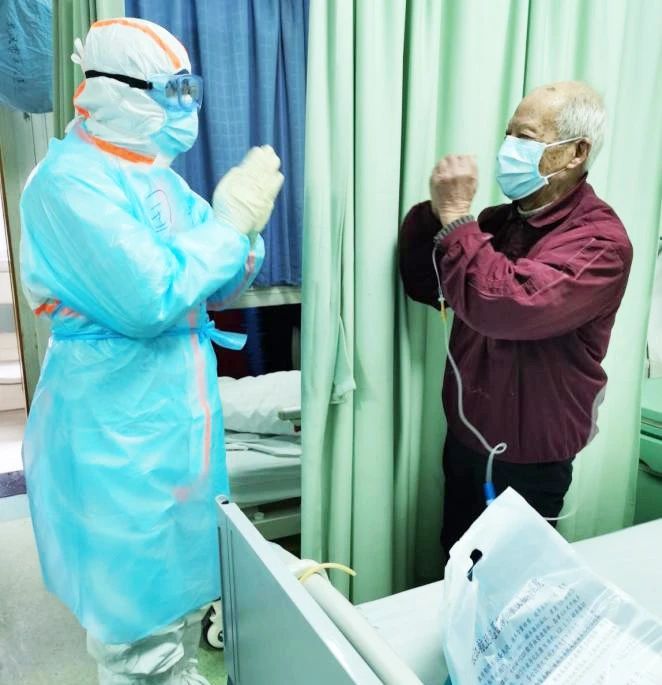 一名從敬老院轉(zhuǎn)來的老爺爺,入院第一天精神狀態(tài)不好,護士長給他喂飯還容易嗆咳。第二天,我們一起去給老爺爺喂飯,陪他聊天,老爺爺吃了一份盒飯,對我們說:“謝謝你們!你們一定要保護好自己,我們最大的愿望就是你們可以平安回家!”我沒控制住自己的眼淚。