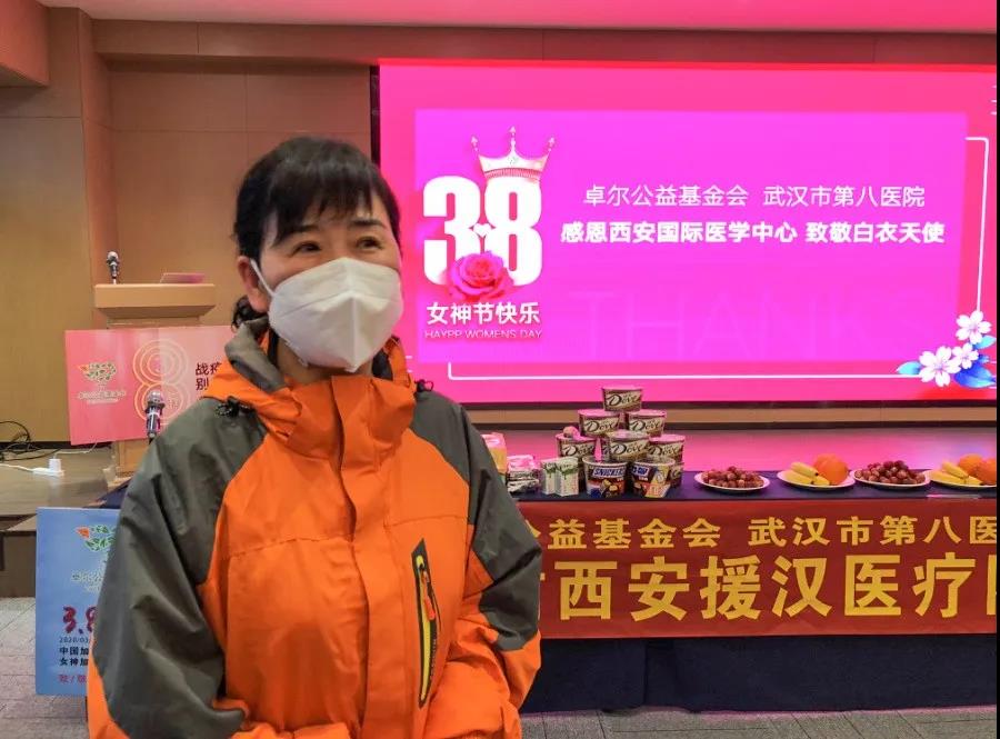 3月8日國際勞動婦女節(jié),武漢市江岸區(qū)副區(qū)長蔣志耕,江岸區(qū)衛(wèi)健局黨委書記、局長童衛(wèi)橋,武漢市第八醫(yī)院黨委書記唐迎春,卓爾公益基金會副理事長方黎等領導前往西安國際醫(yī)學中心醫(yī)院赴湖北醫(yī)療隊駐地,為“抗疫女神”們送上節(jié)日祝福。醫(yī)療隊隊長楊峰、黨支部書記李斌、專家組成員及隊員代表等出席。會議由江岸區(qū)衛(wèi)健局童衛(wèi)橋書記局長主持。