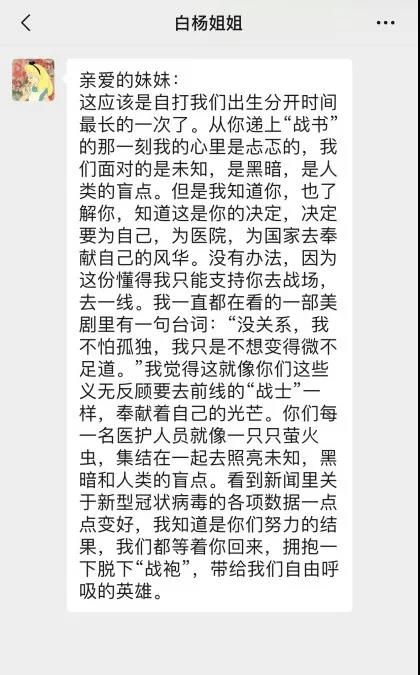 陽光總在風雨后,我們大家都堅定信心,有祖國做我們的強大后盾,有全國醫(yī)護人員的齊心協(xié)力、同舟共濟,相信我們一定能打贏這場戰(zhàn)役,春暖花開之日我們再見!