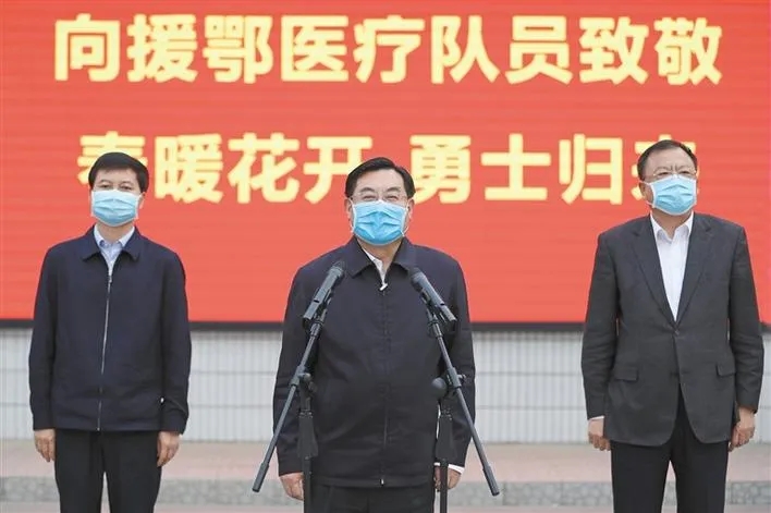 省委書記胡和平前往定點酒店迎接看望進行集中休整的醫(yī)療隊員。