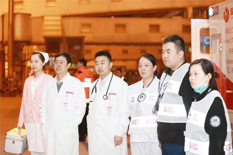 12月4日晚18點,西安國際醫(yī)學(xué)中心醫(yī)院神經(jīng)外科已做好了一切迎接患者的準(zhǔn)備,賀世明主任領(lǐng)隊的西北首臺腦卒中救援車也準(zhǔn)時從西安國際醫(yī)學(xué)中心醫(yī)院出發(fā)。救援過程中,得到了西安咸陽機場海關(guān)、西安咸陽國際機場運行控制協(xié)調(diào)中心以及春秋航空的大力支持,晚20點55,落地的航班與救護車第一時間在停機坪實現(xiàn)了無縫對接,醫(yī)護人員齊心協(xié)力將患者安全轉(zhuǎn)運至西安國際醫(yī)學(xué)中心醫(yī)院,接受進一步治療。