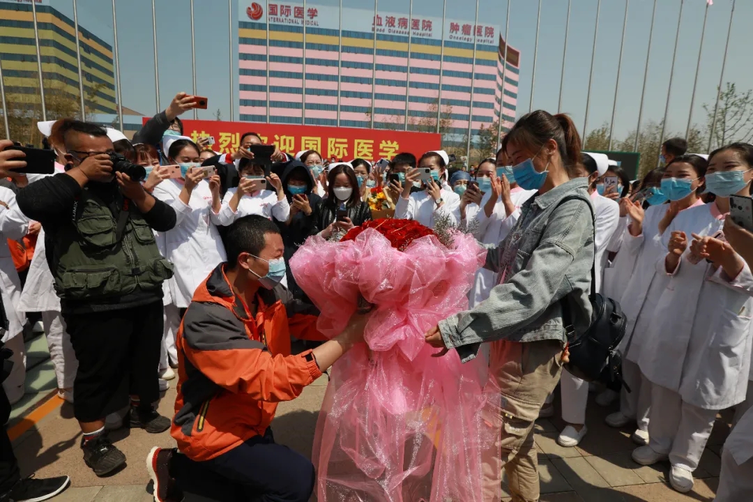 “感謝有你!今天是我回家的日子,感恩相遇相知相戀。我想結束我們的愛情長跑。嫁給我,你愿意嗎?”在萬人廣場上,消化介入診療中心護師趙寶寶向相戀4年的女友求婚。