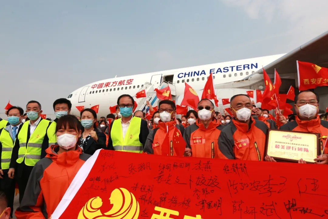 不負(fù)韶華戰(zhàn)疫情,春滿華夏迎君歸。西安國際醫(yī)學(xué)中心醫(yī)院支援湖北醫(yī)療隊225名醫(yī)護人員圓滿完成救援任務(wù),由“凱旋門”登機,搭乘“勝利號”,于3月24日抵達西安。西安國際醫(yī)學(xué)中心醫(yī)院還有張欣、李晶、申歡歡、張波、馬喬璐、商江麗等6名隊員仍奮戰(zhàn)在武漢協(xié)和醫(yī)院西院。