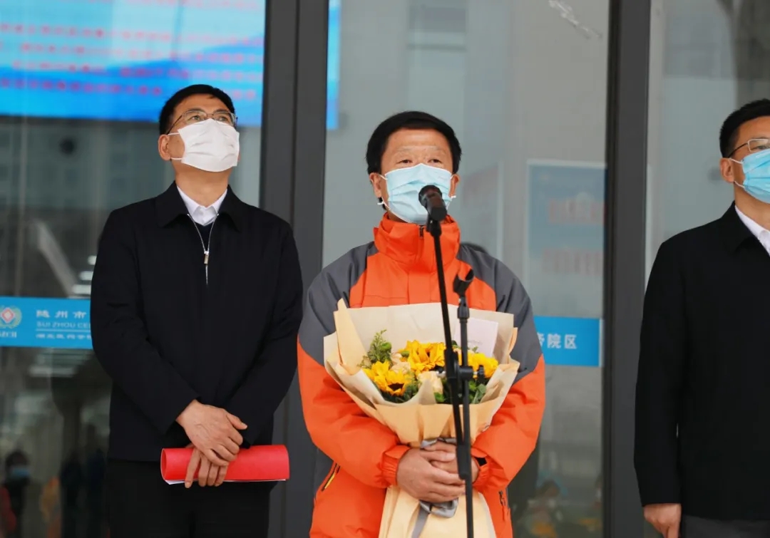 陳瑞峰書記代表隨州市委、市政府,代表258萬隨州人民,向醫(yī)療隊全體隊員表示最衷心的感謝和最崇高的敬意!他說,危難之時見真情,在隨州疫情防控最吃勁的關(guān)鍵階段,西安國際醫(yī)學(xué)中心醫(yī)院援隨醫(yī)療隊義無反顧的堅定逆行,同隨州人民風(fēng)雨同舟,日夜鏖戰(zhàn)在疫情防控第一線,托起了無數(shù)生命的希望,傳遞著人性光輝和社會大愛,充分展現(xiàn)了“敬佑生命、救死扶傷、甘于奉獻(xiàn)、大愛無疆”的醫(yī)者仁心,你們是最美的天使,是真正的英雄,是新時代最可愛的人,為保障隨州人民生命安全和身體健康作出了重要貢獻(xiàn)。經(jīng)過艱苦努力,隨州疫情防控形勢發(fā)生積極向好變化,但不獲全勝決不輕言成功。我們堅信,有以習(xí)近平同志為核心的黨中央堅強(qiáng)領(lǐng)導(dǎo),有中國特色社會主義制度優(yōu)勢,有卓爾控股集團(tuán)和西安國際醫(yī)學(xué)中心醫(yī)院的大力支持,有全市人民眾志成城、同舟共濟(jì),一定能夠不斷鞏固成果、擴(kuò)大戰(zhàn)果,奪取疫情防控人民戰(zhàn)爭、總體戰(zhàn)、阻擊戰(zhàn)的全勝完勝,一定會迎來一個繁花似錦的春天。誠摯地邀請大家?;仉S州,隨州永遠(yuǎn)是你們的家,隨州人民永遠(yuǎn)把你們當(dāng)恩人、當(dāng)親人!