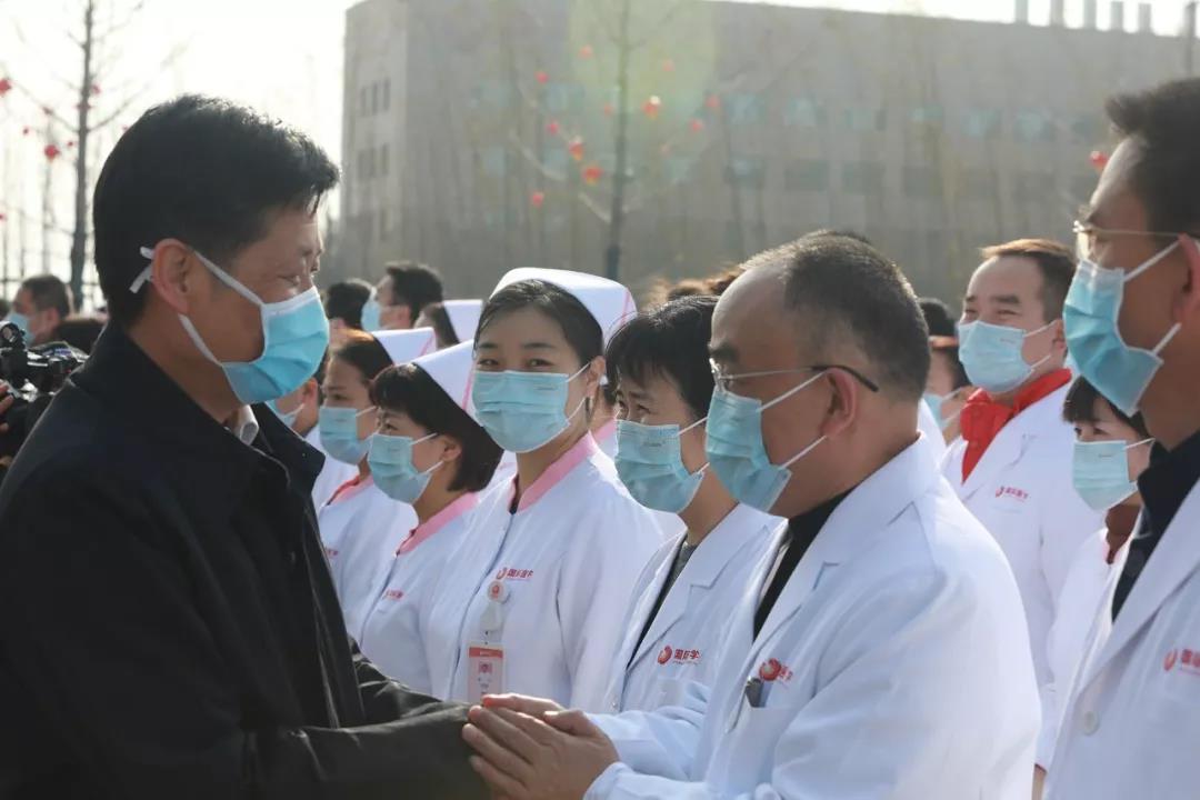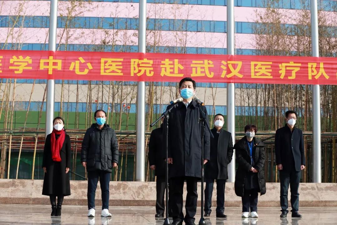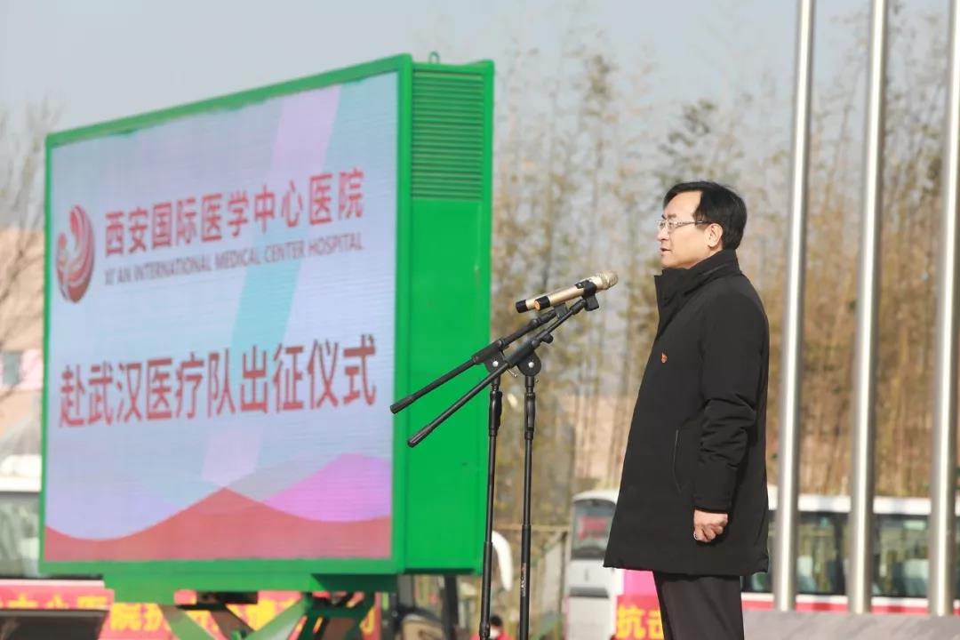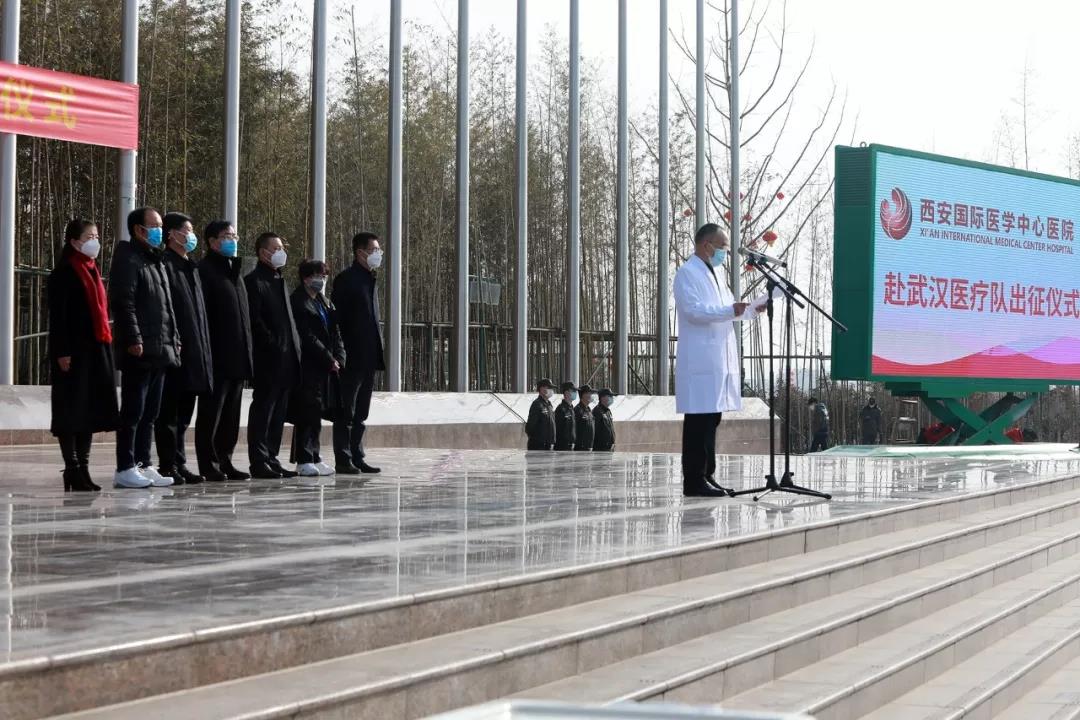 陜西省衛(wèi)健委黨組書(shū)記劉勤社說(shuō),我代表省委省政府應(yīng)對(duì)新型冠狀病毒感染肺炎疫情工作領(lǐng)導(dǎo)小組和辦公室,為大家送行。西安國(guó)際醫(yī)學(xué)中心醫(yī)院率先擔(dān)當(dāng)使命,主動(dòng)組織醫(yī)療隊(duì),感謝你們。希望大家堅(jiān)定信心、同舟共濟(jì)、科學(xué)防治、精準(zhǔn)施策,我們盼望大家凱旋歸來(lái)。