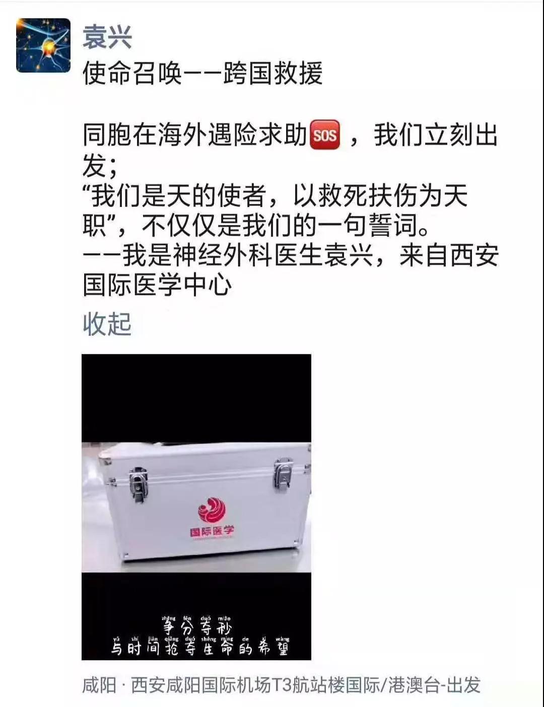“這是中國醫(yī)生義不容辭的責任!”西安國際醫(yī)學中心醫(yī)院腦科醫(yī)院神經(jīng)外科主任賀世明介紹,12月2日,剛下手術的賀世明主任接到了求助電話,立即匯報上級領導,尹強院長當機立斷,派出袁興醫(yī)生星夜兼程,帶著急救藥品設備奔赴泰國。