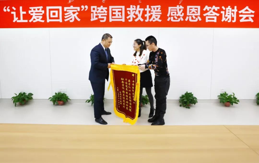 高瑞及家人對幫助過她的十余家單位敬送錦旗。代表西安國際醫(yī)學中心醫(yī)院接受錦旗的醫(yī)教部主任許鵬表示,感恩偉大的時代,感謝大家對西安國際醫(yī)學中心醫(yī)院的信任。