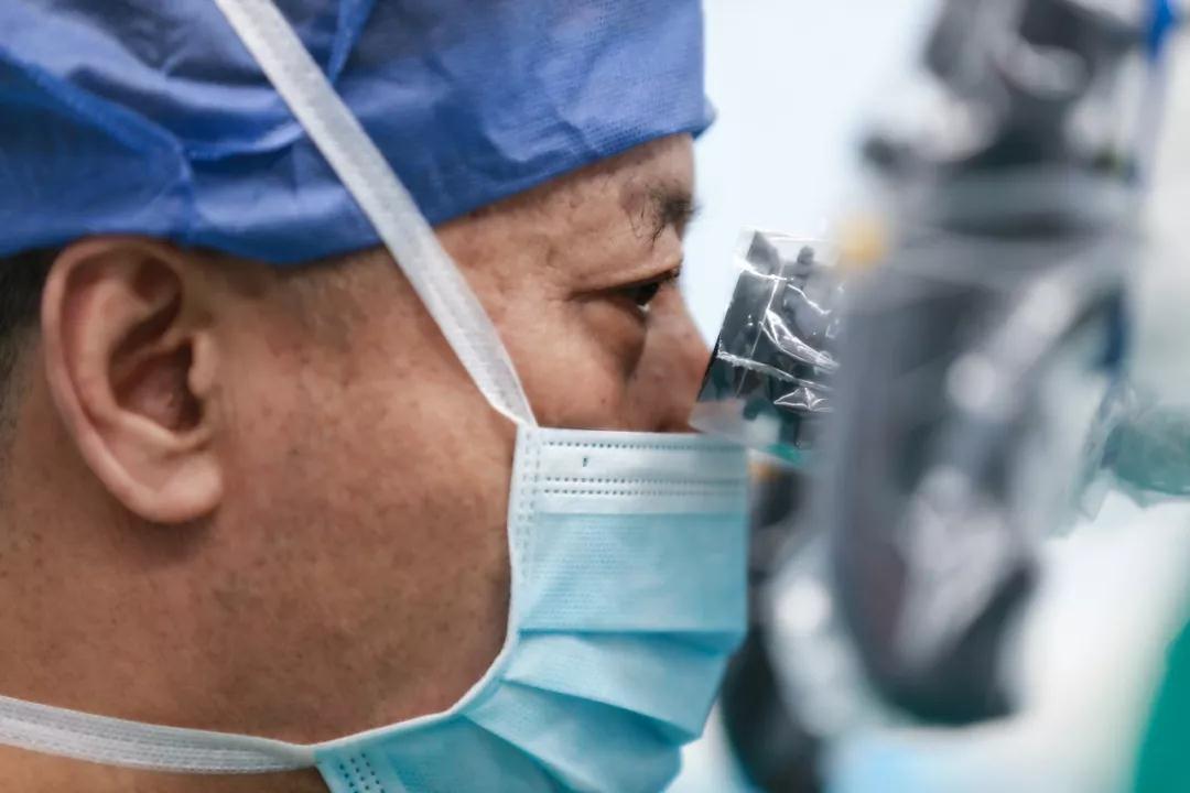 隨后,腦科醫(yī)院名譽院長高國棟使用機器人手術(shù)顯微鏡(ZEISS KINEVO 900),為一位41歲原發(fā)性面肌抽搐的男性患者行左側(cè)面神經(jīng)微血管減壓術(shù)。術(shù)后,患者情況穩(wěn)定。