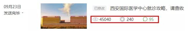 西安國際醫(yī)學(xué)中心開業(yè)以來,得到社會各界的廣泛支持與認(rèn)可,新華網(wǎng)、人民網(wǎng)、央廣網(wǎng)、中國新聞社、健康時報、人民日報海外網(wǎng)、陜西日報、陜西人民廣播電臺、西安日報、西安晚報、華商報、西部網(wǎng)、新浪、搜狐、今日頭條、榮耀西安等各大主流媒體、融媒體走進(jìn)西安國際醫(yī)學(xué)中心,進(jìn)行了一輪又一輪的的報道,獲得數(shù)萬網(wǎng)友點贊、熱評。同時,西安國際醫(yī)學(xué)中心微信公眾號屢次榮獲陜西醫(yī)療自媒體聯(lián)盟醫(yī)療機(jī)構(gòu)類榜單第2名,“狀元文”《西安國際醫(yī)學(xué)中心就診攻略,請查收》獲得了45040的閱讀量,榮登榜首。位列第二的《西安國際醫(yī)學(xué)中心最美全家福溫暖來襲!》更獲得52821的閱讀量。僅“十一”假期7天,西安國際醫(yī)學(xué)中心微信公眾號粉絲數(shù)新增10261人!
