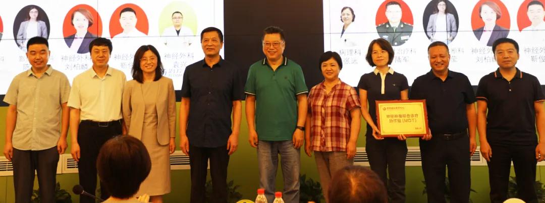 在與會人員見證下,高國棟教授,石梅教授,賀世明教授同甘肅省腫瘤醫(yī)院,寧夏醫(yī)科大學(xué)總院,西京醫(yī)院,西安交大一附院等參會專家共同為西安國際醫(yī)學(xué)中心醫(yī)院神經(jīng)腫瘤綜合診療協(xié)作組(MDT)剪彩揭牌。