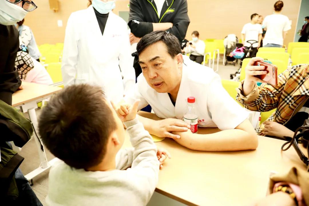 科普講座結(jié)束后,郭樹忠教授和武瑾醫(yī)生分別為小耳患者們進(jìn)行一對(duì)一的面診。小耳患者及家屬有序面診,活動(dòng)現(xiàn)場(chǎng)井然有序。小耳癥孩子的爸爸媽媽們從帶著很多疑問(wèn)而來(lái),剛開始眉頭緊皺,聽了兩位專家的介紹,如釋重負(fù),了然于胸。