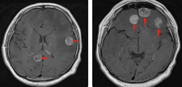 無(wú)獨(dú)有偶,60歲的左肺癌患者石先生,在外院接受了手術(shù)治療,結(jié)果術(shù)后10月出現(xiàn)腫瘤腦轉(zhuǎn)移,頭部增強(qiáng)MRI顯示:顱內(nèi)多發(fā)占位性病變伴水腫,接二連三的重?fù)糇屖壬霈F(xiàn)表情淡漠,沉默寡言,絕食等抑郁癥狀,VMAT放療技術(shù)與心理疏導(dǎo)雙管齊下,3周的治療后顱內(nèi)轉(zhuǎn)移病灶顯著縮小,部分甚至消失,困擾石先生的頭痛、頭暈癥狀也不復(fù)存在,石先生重拾對(duì)生活的希望,也對(duì)未來(lái)的治療充滿信心。