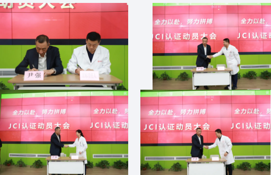 尹強(qiáng)院長(zhǎng)與??漆t(yī)院院長(zhǎng)、臨床科室、醫(yī)技科室、檢驗(yàn)中心及機(jī)關(guān)職能部門主任、代表,簽署了《評(píng)審目標(biāo)責(zé)任書》。消化病醫(yī)院執(zhí)行院長(zhǎng)韓國(guó)宏、腫瘤一病區(qū)黎冬梅護(hù)士長(zhǎng)分別發(fā)言,一致表示,一定積極參與、配合、支持相關(guān)工作,為我院順利通過JCI認(rèn)證工作全力以赴!