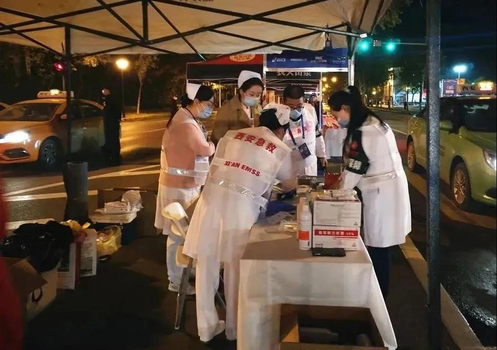 凌晨4點,醫(yī)療保障組分成3隊,分乘4輛車從醫(yī)院統(tǒng)一出發(fā)前往賽事現(xiàn)場。到達(dá)指定地點后,團(tuán)隊立刻按照前期演練分工進(jìn)行相關(guān)準(zhǔn)備工作。7點30分,2020西安國際馬拉松正式鳴槍開跑,現(xiàn)場保障人員及時響應(yīng),積極救助受傷參賽選手,專業(yè)的技術(shù)和溫馨的言語,讓受傷的的選手們感到溫暖。