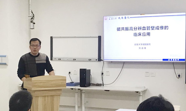 劉連峰教授給大家?guī)怼洞殴舱窀叻直嫜鼙诔上竦呐R床應(yīng)用》的專題匯報(bào),劉教授首先介紹了延安大學(xué)咸陽醫(yī)院的基本概況,然后從磁共振高分辨血管壁成像的掃描前準(zhǔn)備和技術(shù)要求等角度講解,通過多個(gè)病例,詳細(xì)分析了高分辨率磁共振血管壁成像技術(shù)(HRMR-VWI)在頸部和顱內(nèi)血管病變中的臨床應(yīng)用,指出HRMR-VWI是一項(xiàng)實(shí)用性很強(qiáng)的技術(shù),我們要結(jié)合患者的自身情況,切實(shí)為患者服務(wù)。