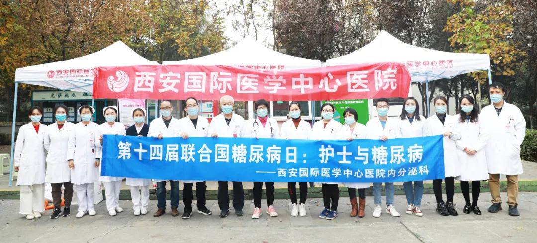 2020年11月14日是第十四屆聯(lián)合國(guó)糖尿病日,今年的主題是“護(hù)士與糖尿病”,西安國(guó)際醫(yī)學(xué)中心醫(yī)院內(nèi)分泌科組織開展全院護(hù)士糖尿病知識(shí)培訓(xùn)班、糖尿病患者公益大講堂、藍(lán)光行動(dòng)、義診活動(dòng)等系列活動(dòng),旨在提升護(hù)理團(tuán)隊(duì)對(duì)糖尿病的認(rèn)知,提高公眾主動(dòng)防控糖尿病的意識(shí),喚起社會(huì)對(duì)糖尿病人群的重視。