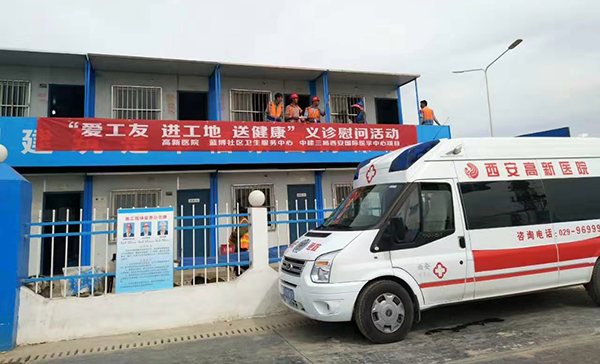 2017年7月8日,由國際醫(yī)學(xué)旗下西安高新醫(yī)院、高新區(qū)藍(lán)博社區(qū)衛(wèi)生服務(wù)中心聯(lián)合中建三局組織的“愛工友、進(jìn)工地、送健康”義診慰問活動(dòng)在西安國際醫(yī)學(xué)中心項(xiàng)目工地舉辦,為現(xiàn)場施工工友們送上關(guān)愛和祝福。