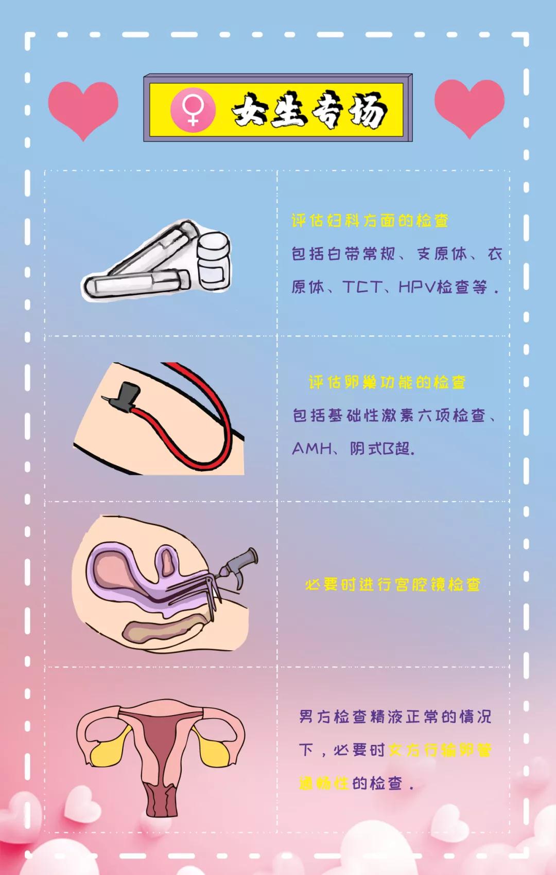 這些主要檢查生殖系統(tǒng)及器官是否有病變,“種子是否健康,土地是否肥沃”,“寶寶未來的家”是否“宜居”。如果發(fā)現(xiàn)問題就有足夠的時間進行治療,以免一些疾病影響到卵子、精子的質量以及后期備孕成功后對胚胎發(fā)育的影響甚至導致流產(chǎn)。