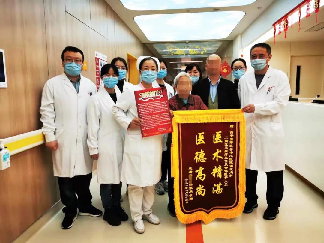 “醫(yī)生與護(hù)士們每天都早早到病房看望老人,耐心仔細(xì)詢問病情,安撫老人情緒……我代表家人對(duì)全體醫(yī)護(hù)人員表示最衷心的感謝!”出院當(dāng)天,岳奶奶的兒女將感謝信與錦旗送到消化內(nèi)科二病區(qū)醫(yī)護(hù)人員手中。