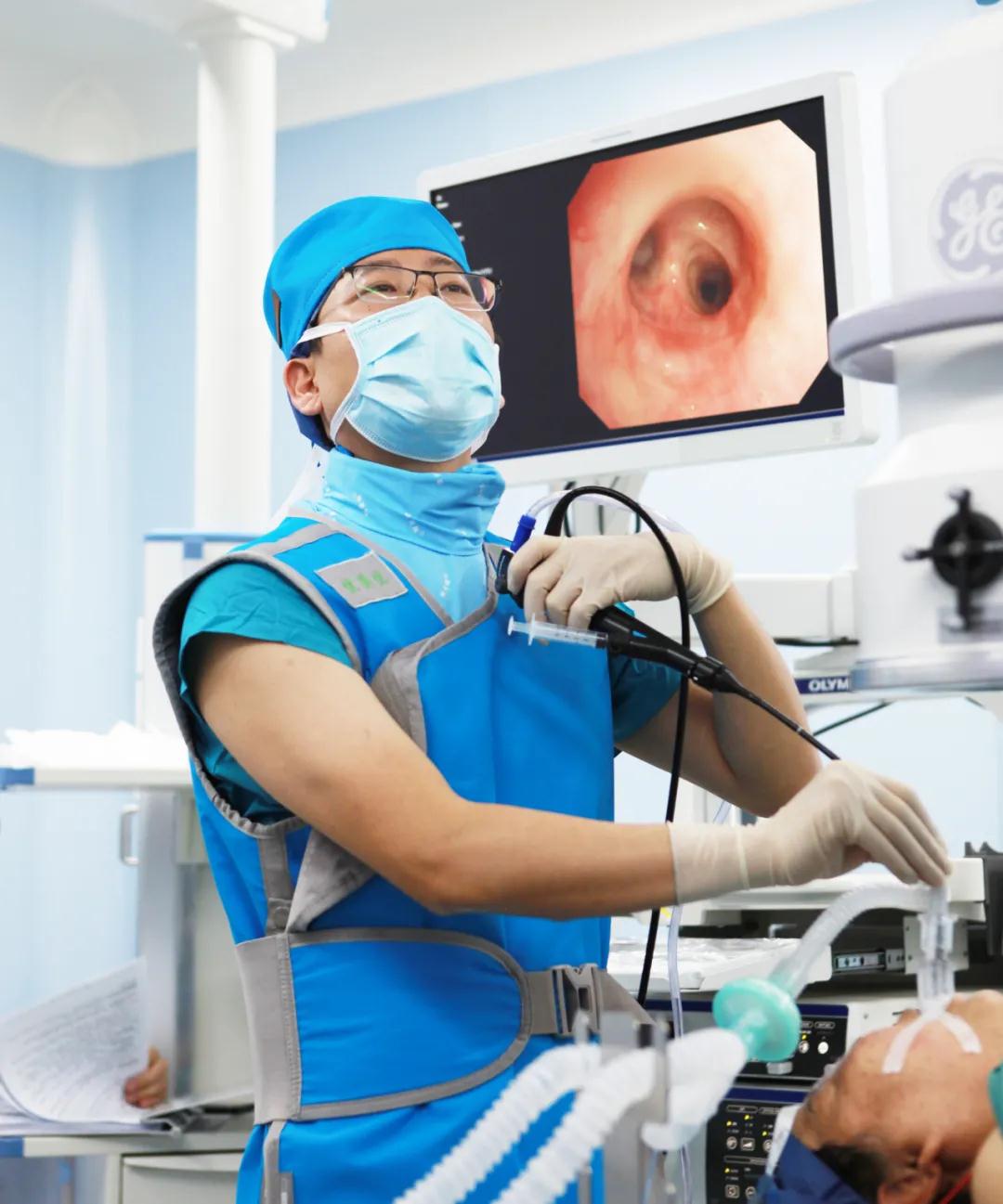據(jù)了解,經(jīng)支氣管鏡跨肺組織肺外周結(jié)節(jié)活檢術(shù)(BTPNA)適應(yīng)于常規(guī)氣管鏡不能到達(dá),病灶與支氣管不相通的情況。在支氣管壁上建立隧道,通過(guò)鞘管到達(dá)病灶部位進(jìn)行活檢。經(jīng)常與Lungpro增強(qiáng)現(xiàn)實(shí)導(dǎo)航系統(tǒng)配合應(yīng)用,陽(yáng)性率可達(dá)80%以上,是一項(xiàng)可靠的技術(shù),目前西北地區(qū)僅我院可獨(dú)立完成。