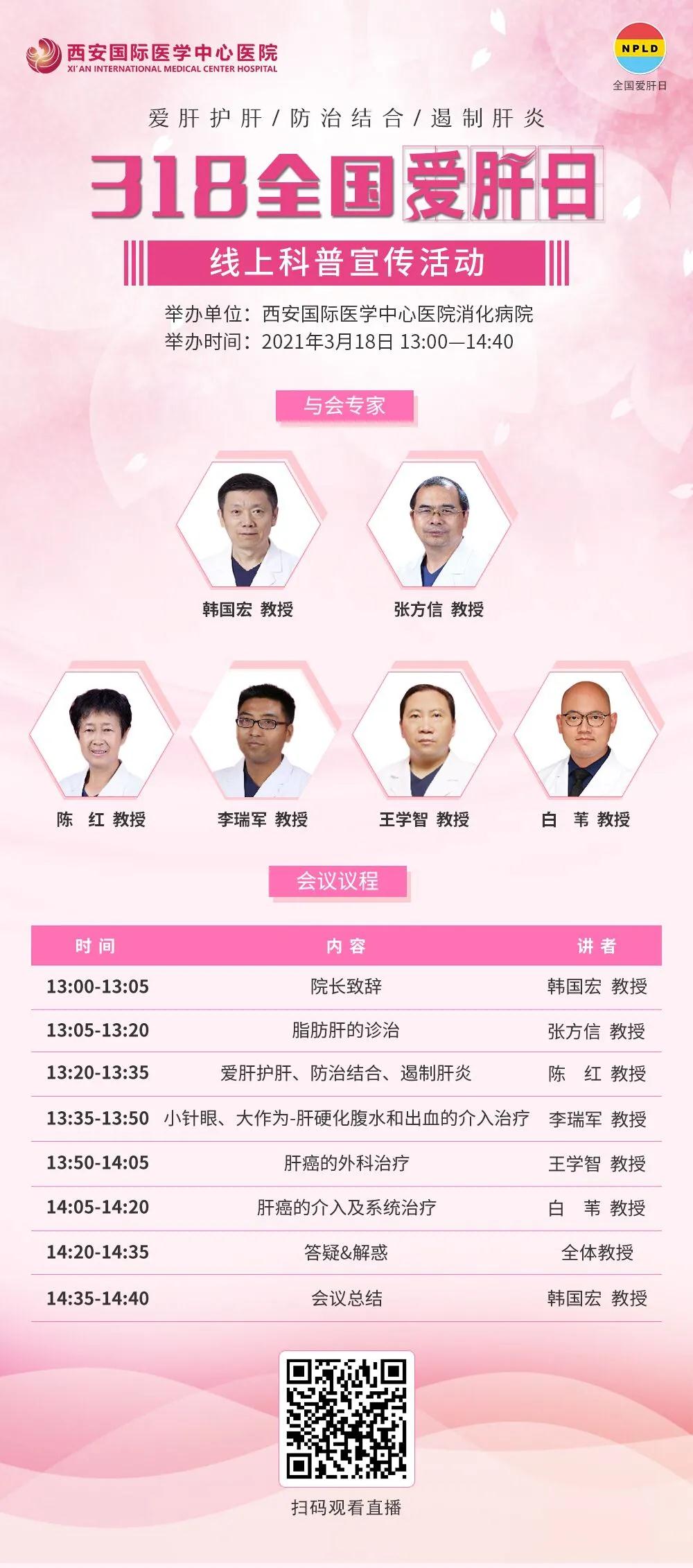3月18日是第21個“全國愛肝日”,這是以國家的名義為人體一個器官設立的健康之日,以警示人們愛肝護肝,減少肝病對國人生命和健康的傷害,今年愛肝日的主題是“愛肝護肝、防治結(jié)合、遏制肝炎”。為了提高公眾愛肝護肝意識,警惕肝病帶來的危害,了解相關肝病的治療手段,我院消化病醫(yī)院的多名專家,在愛肝日成功舉辦了線上科普宣傳活動,讓大家一起小—心—“肝”。