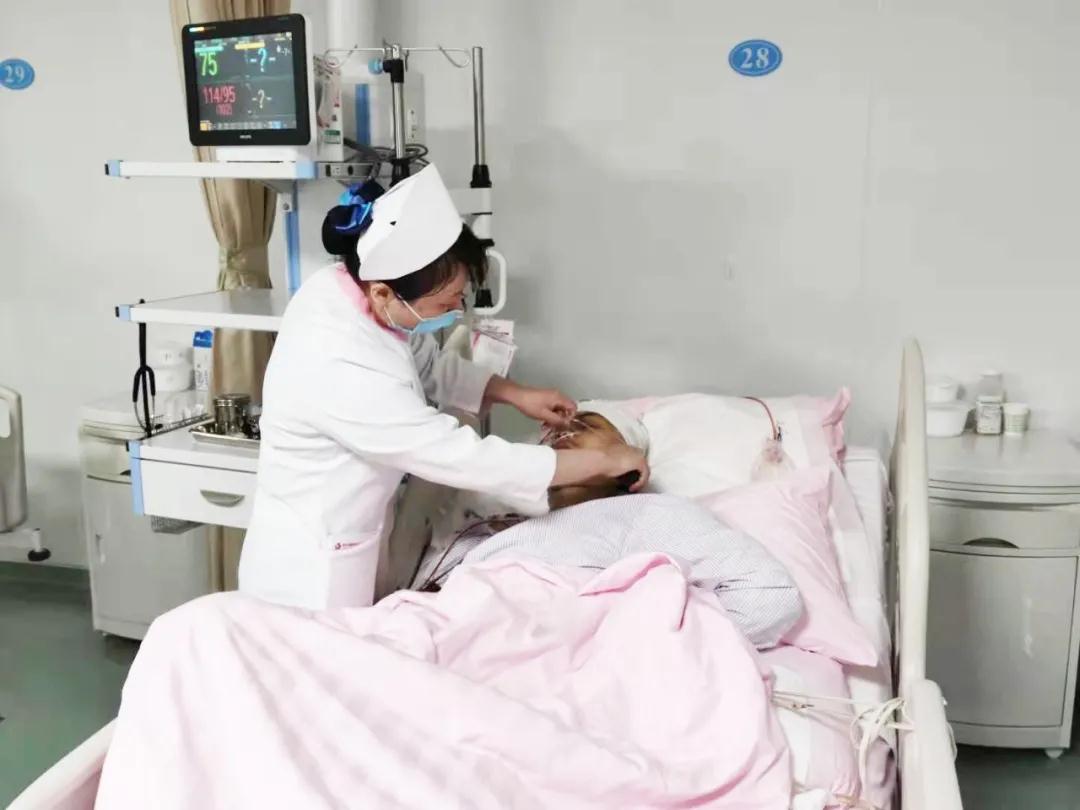 在重癥監(jiān)護(hù)室的病房里,張博護(hù)士長為患者刮著胡須,“他已經(jīng)清醒了,可以進(jìn)行交流。我們安排專人進(jìn)行24小時(shí)監(jiān)護(hù)。由于在這里家人不能進(jìn)入陪護(hù),患者剛開始清醒后的情緒比較煩躁,但是小伙子還是很堅(jiān)強(qiáng),經(jīng)過我們的疏導(dǎo),時(shí)不時(shí)主動(dòng)來找我們聊天,情緒好多了,對能闖過這一關(guān)很高興。”