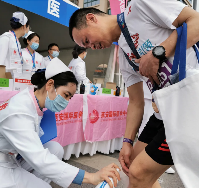 4月17日,西安國(guó)際馬拉松(以下簡(jiǎn)稱“西馬”)在古都西安如約而至,2021年是西馬舉辦的第五年,也是西馬首次在人間四月天舉辦。西安國(guó)際醫(yī)學(xué)中心醫(yī)院再度“牽手”西馬,由骨科醫(yī)院、康復(fù)醫(yī)院、急救中心組成醫(yī)療保障組,承擔(dān)半程馬拉松終點(diǎn)醫(yī)療點(diǎn)和AED急救的醫(yī)療保障任務(wù)。