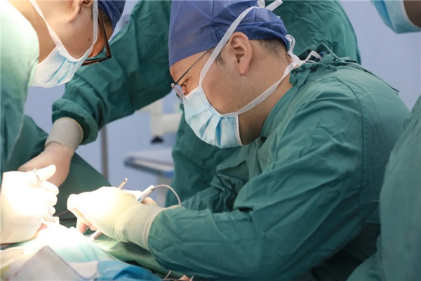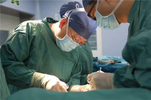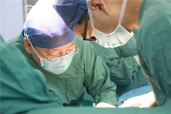 做好了充分準(zhǔn)備與預(yù)案,手術(shù)臺(tái)前的劉曉敏鎮(zhèn)定專注,在分離切斷王金花的甲狀腺懸韌帶后,他抽絲剝繭,一根根處理甲狀腺上極血管,繼而結(jié)扎切斷甲狀腺中、下的靜脈、動(dòng)脈,在由峽部切斷處起始分離甲狀腺背面時(shí),劉曉敏仔細(xì)辨認(rèn)喉返神經(jīng)和甲狀旁腺,確保不傷分毫。一般情況下,手術(shù)至此可以順利結(jié)束??赏踅鸹ㄊ俏焕淆g患者,由于氣管軟化,加上腫塊長(zhǎng)久壓迫,氣管就像失去回彈力的彈簧,從醫(yī)學(xué)角度看,患者已可以治愈,短期也無(wú)生命大礙,可彈不起來(lái)的“彈簧”還會(huì)重新聚攏在一起,讓老太太喘不上氣。一次手術(shù)能解決的問(wèn)題,絕不讓患者再受二茬罪,劉曉敏又對(duì)王金花實(shí)施氣管懸吊術(shù),把“癱瘓”了的氣管朝兩邊拉起,給氣管留出足夠的空間出氣。
