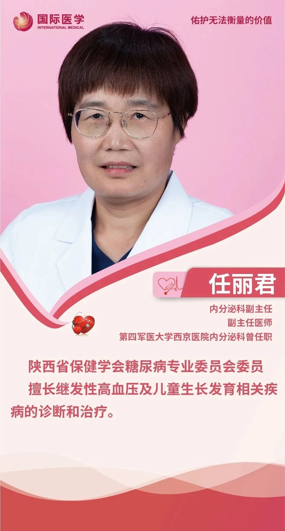 生命之重,重于千金,醫(yī)生是捍衛(wèi)生命的守護神,救死扶傷是醫(yī)生畢生追求的信念。從披上白衣成為一名內(nèi)分泌科醫(yī)生的那一刻起,“對生命負責”這一響亮的口號,就成為她工作的源泉和動力。她的肩上就擔負起“責任”和“挑戰(zhàn)”兩項重任。在她看來,患者的需求就是醫(yī)者努力的方向。她就是西安國際醫(yī)學中心醫(yī)院內(nèi)分泌科副主任任麗君。