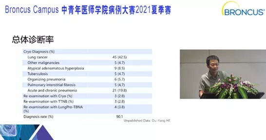 據(jù)歐陽海峰介紹,本次參評病例是一項單中心隊列研究的病例數(shù)據(jù)。部分肺部結(jié)節(jié)、肺部包塊患者存在診斷困難的問題。患者前期在多家醫(yī)院行氣管鏡檢查,均無法明確診斷。通過歐陽海峰團(tuán)隊LungPro導(dǎo)航 超細(xì)MP290F支氣管鏡 1.1mm冷凍探針 rEBUS的TBCB術(shù)式,診斷率高達(dá)90%以上。對于仍無法明確診斷的少部分病例,通過BTPNA、LungPro-TBNA、TTNB等術(shù)式也獲得了明確診斷。經(jīng)文獻(xiàn)檢索,此項研究是該術(shù)式的首次報道。目前,困難取材的肺部及縱隔疾病是歐陽海峰團(tuán)隊主要病種之一,也是引領(lǐng)性特色技術(shù)之一。