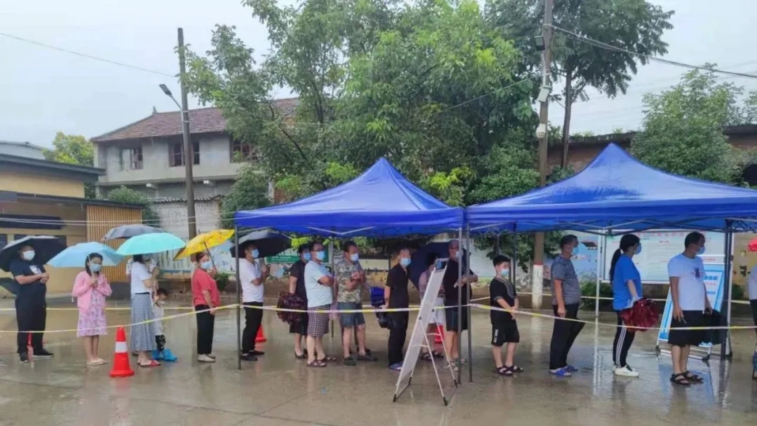 風(fēng)雨交加的社區(qū)中,一幕幕溫情畫面也在上演。在五星街道北張堡村,郭小娟護士正在給五歲的小女孩做核酸檢測,做完后,小女孩的一聲:“謝謝阿姨!”讓她紅了眼眶。原來,這周她本要陪孩子好好過個周末,但周五接到集結(jié)通知,她毫不猶豫報了名,只好將三歲半的孩子交給父母照顧?!白蛲砘丶乙呀?jīng)十點了,孩子還在等我,問我熱不熱。雖然沒能在家陪他,但是能在核酸檢測點守護大家的健康,我覺得很自豪。”郭小娟說。