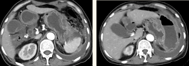 一籌莫展的她終于在病友的介紹下,來到西安國際醫(yī)學中心醫(yī)院找到蔡磊主任。經(jīng)過詢問病史,查體等,蔡磊主任建議口服索坦治療。3個月后,李阿姨復查CT提示胃間質(zhì)瘤較前明顯縮小,大小約10.4cm?6cm。但仍存在消化道出血,營養(yǎng)狀況差,全身無力,骨髓抑制。蔡磊主任隨即將患者收治入院。