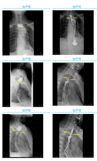 經(jīng)過一個(gè)周期的放療,李先生明顯感受好多了,可以正常吃飯喝水。食管鋇餐造影顯示,食管吻合口區(qū)腫塊明顯縮小,食管狹窄減輕。