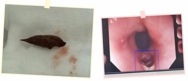 考慮到楊奶奶年事已高,食管異物嵌頓的時(shí)間越久,感染、化膿的風(fēng)險(xiǎn)就越大,食管入口出血誤吸進(jìn)入氣道,甚至?xí)<吧乜漆t(yī)院胸外二病區(qū)崔凱主任立即聯(lián)系消化內(nèi)鏡中心進(jìn)行會(huì)診。
