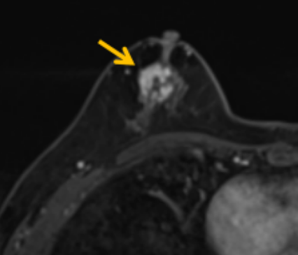 針對(duì)患者乳房小固定難度大這一問(wèn)題,陳寶瑩通過(guò)巧妙體位和固定器的調(diào)整,順利固定好乳房。經(jīng)過(guò)磁共振多模態(tài)掃描,陳寶瑩找出病變活性成分相對(duì)集中區(qū)域,精準(zhǔn)確定穿刺路徑,置入引導(dǎo)針、旋切針,到位后多角度旋切取出足量組織,拔除旋切針后即時(shí)行磁共振掃描,精準(zhǔn)取得組織且術(shù)區(qū)出血很少,遂加壓包扎,整個(gè)過(guò)程非常順利,旋切活檢后患者回家休息。兩天后隨訪(fǎng),李女士沒(méi)有任何不適,五天后皮膚上幾毫米的小切口已經(jīng)愈合。最終病理結(jié)果證實(shí)為乳腺導(dǎo)管原位癌,為早期乳腺癌,為患者后續(xù)針對(duì)性治療奠定了基礎(chǔ)。
