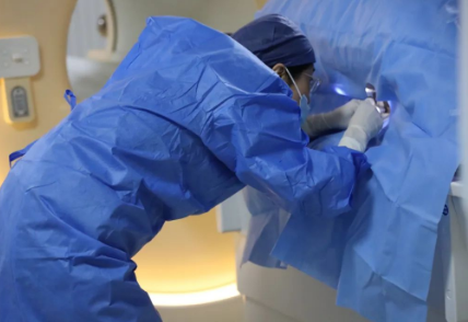 陳寶瑩評(píng)估圖像后發(fā)現(xiàn)病變?yōu)閮H僅在磁共振增強(qiáng)時(shí)顯示,為非腫塊樣病變,比較散,必須取得足夠多的組織才能確保病理檢查的準(zhǔn)確性,常用的核芯針活檢獲取的組織較少,因此最終確定了磁共振引導(dǎo)下行真空輔助抽吸旋切活檢。取得患者及家屬認(rèn)可后,陳寶瑩帶領(lǐng)團(tuán)隊(duì)開(kāi)始進(jìn)行術(shù)前準(zhǔn)備。