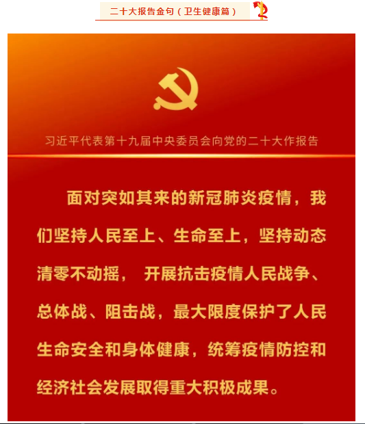 十載成就鼓舞人心,宏偉藍圖催人奮進。西安國際醫(yī)學中心醫(yī)院黨委將把學習宣傳貫徹黨的二十大精神作為頭等大事,把思想和行動迅速統(tǒng)一到黨的二十大精神上來,深刻領(lǐng)會二十大報告中提出的新思想、新觀點、新目標、新舉措,在新征程上,西安國際醫(yī)學中心醫(yī)院全體黨員、群眾將把學習宣傳貫徹黨的二十大精神與學習貫徹習近平總書記來陜考察重要講話重要指示精神和對衛(wèi)生健康工作的一系列重要指示批示精神相結(jié)合,踔厲奮發(fā)、勇毅前行、團結(jié)奮斗,為推進醫(yī)院高質(zhì)量發(fā)展和健康中國建設(shè)貢獻智慧和力量!
