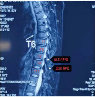 患者劉先生(化名)多年前就被確診為強直性脊柱炎,雖有間歇性治療,但胸椎、頸椎、腰椎等多節(jié)段都有椎管狹窄,尤其是胸9—10和10—11兩個節(jié)段,骨化的黃韌帶和脊髓的硬膜幾乎完全粘連在一起,脊髓壓迫嚴(yán)重。受此影響,劉先生兩條腿沉重、走路沒有力量,需要人攙扶著才能走,且大小便也控制得不好,才52歲的他,生活已完全不能自理。