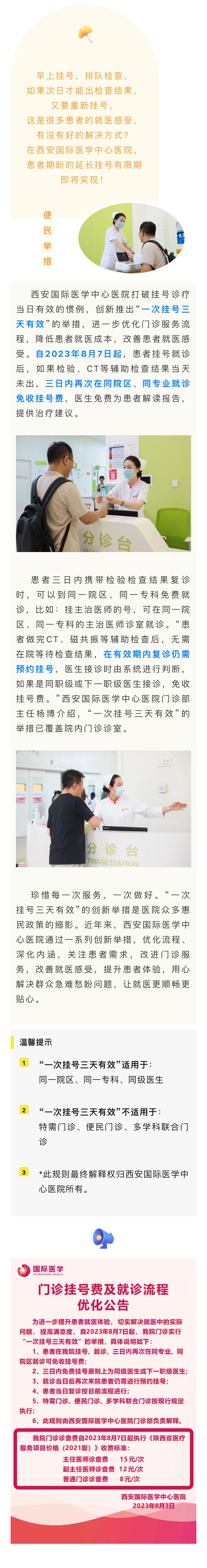 一次掛號三天有效,西安國際醫(yī)學中心醫(yī)院再添便民新舉措