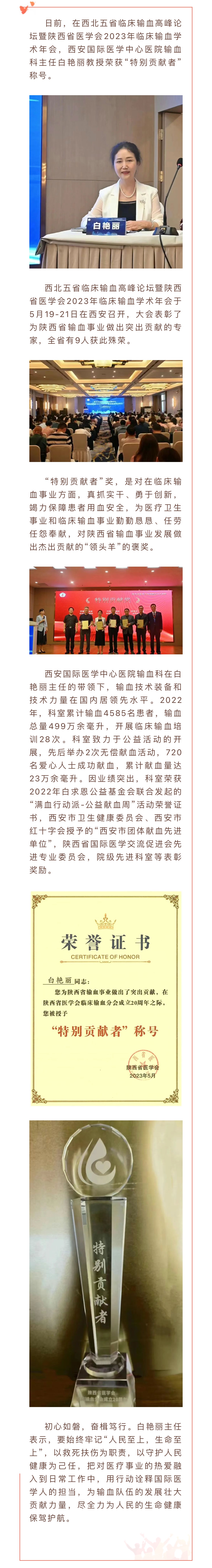白艷麗獲陜西省醫(yī)學(xué)會“特別貢獻者”稱號