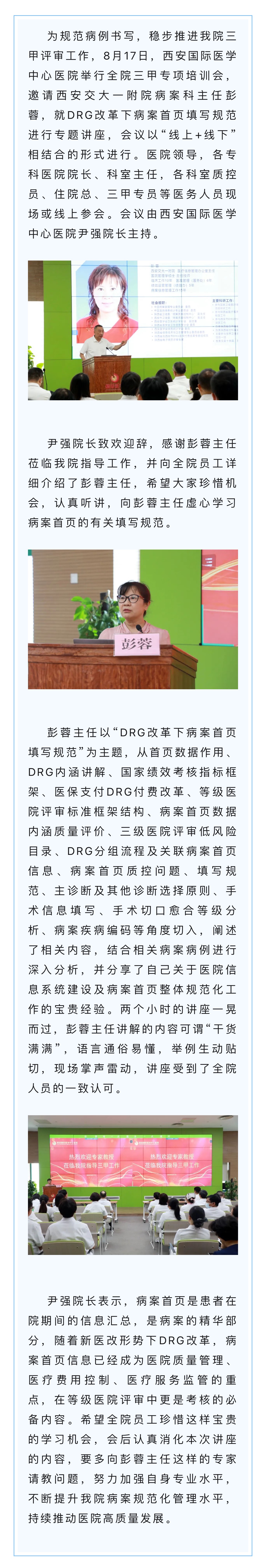 DRG改革下病案首頁(yè)填寫規(guī)范——西安國(guó)際醫(yī)學(xué)中心醫(yī)院舉行三甲專項(xiàng)培訓(xùn)會(huì)