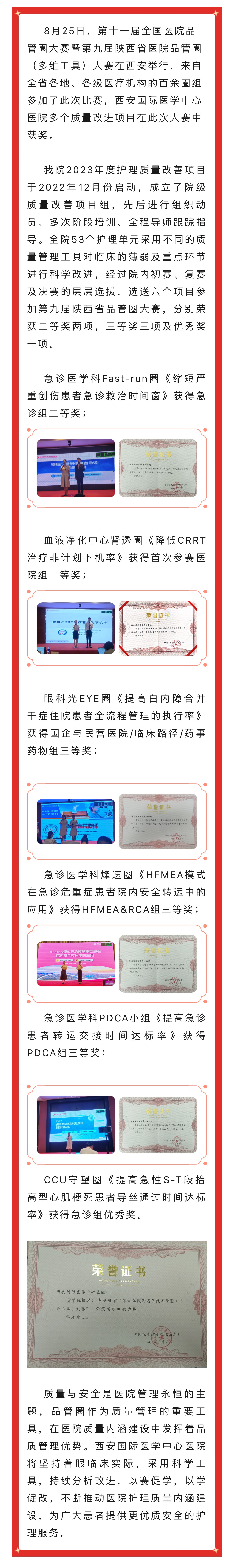 再傳捷報!我院在第九屆陜西省品管圈大賽中斬獲多個獎項