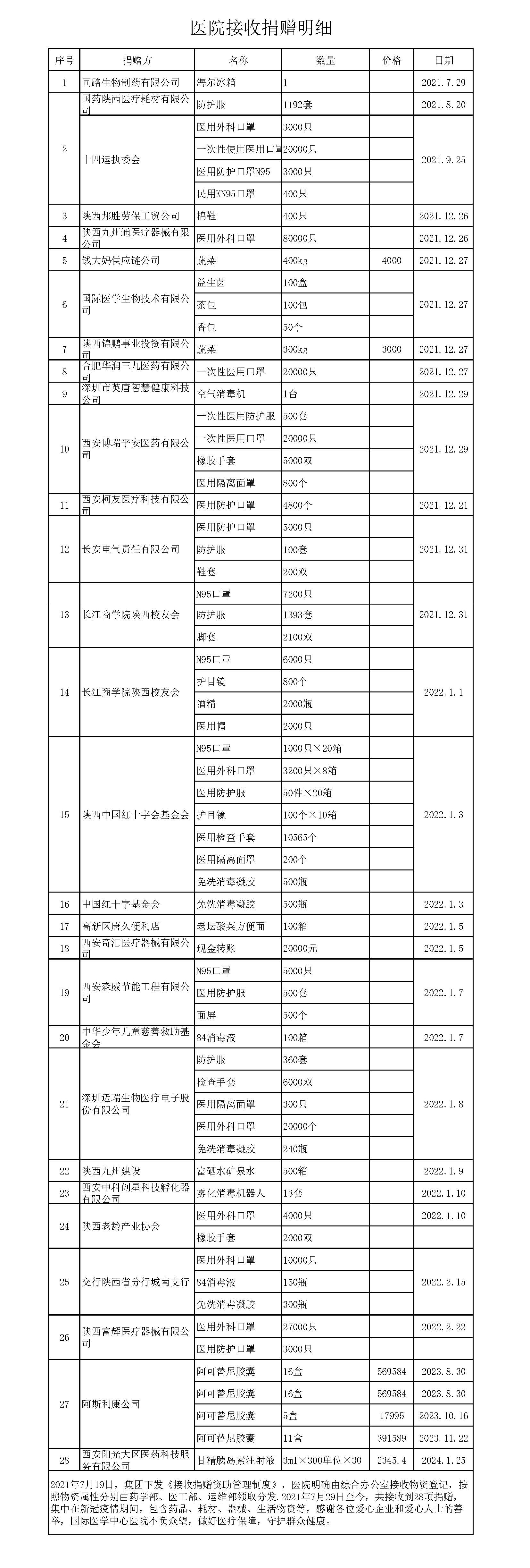 疫情期間接收物資主要有食品類、服飾類、清潔用品類、消毒用品等,物資主要有;方便面、礦泉水、84消毒液、慕斯軟墊、鞋子、拉拉褲、醫(yī)用垃圾袋、15L垃圾桶、等。捐贈(zèng)物資均是通過庫房管理員簽字接收直接入庫管理,領(lǐng)取方式:經(jīng)各部門領(lǐng)導(dǎo)同意后按要求發(fā)放,統(tǒng)一制定發(fā)放模版,部門(領(lǐng)用人)簽字,領(lǐng)用流程結(jié)束。庫房管理員將所有物資發(fā)放明細(xì)同步按類別歸檔保存。