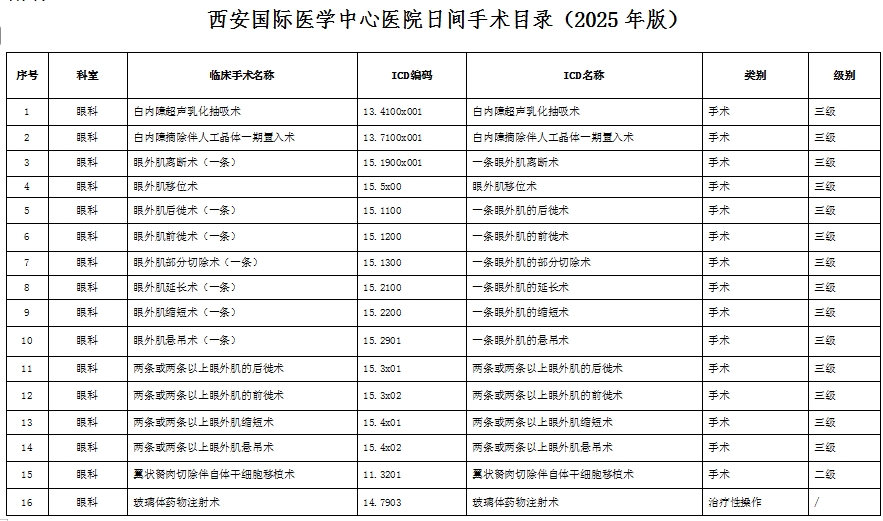 為進(jìn)一步加強本院日間診療管理,規(guī)范日間診療服務(wù)行為,保障日間醫(yī)療質(zhì)量與安全,按照《醫(yī)療機構(gòu)日間醫(yī)療質(zhì)量管理暫行規(guī)定》、《手術(shù)質(zhì)量安全提升行動方案(2023—2025年)》、《提升醫(yī)療質(zhì)量安全行動計劃(2023-2025年)》等各類文件要求,現(xiàn)將本院2025年度日間手術(shù)目錄公示如下: