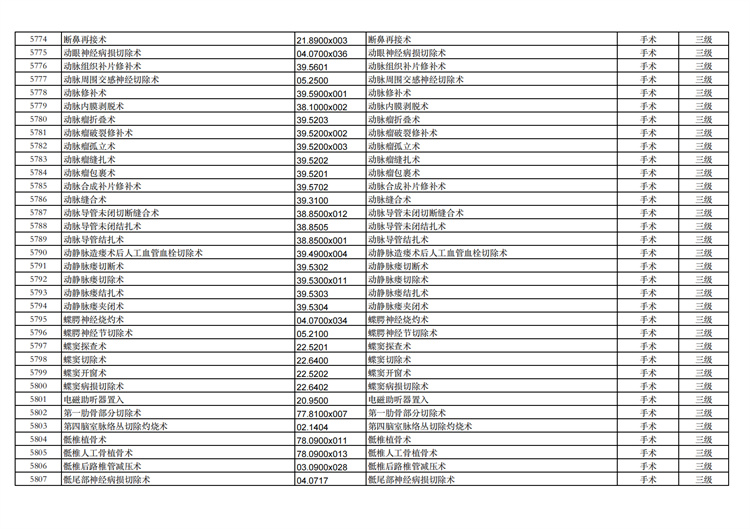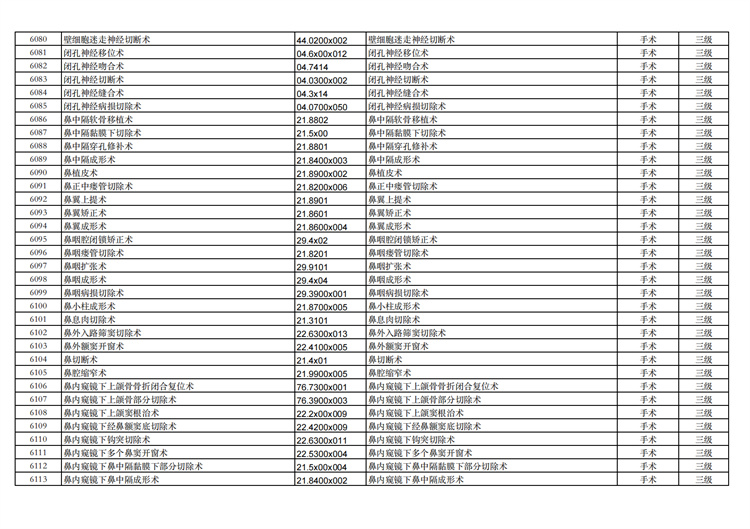 關(guān)于手術(shù)分級(jí)目錄更新的通知