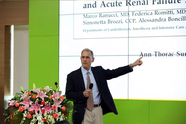 學(xué)術(shù)交流會(huì),約翰-霍普金斯醫(yī)學(xué)中心五位專家又分別與綜合ICU、心血管外科、手術(shù)麻醉中心、超聲診療中心、影像診斷中心、檢驗(yàn)中心等科室開展深度臨床交流。